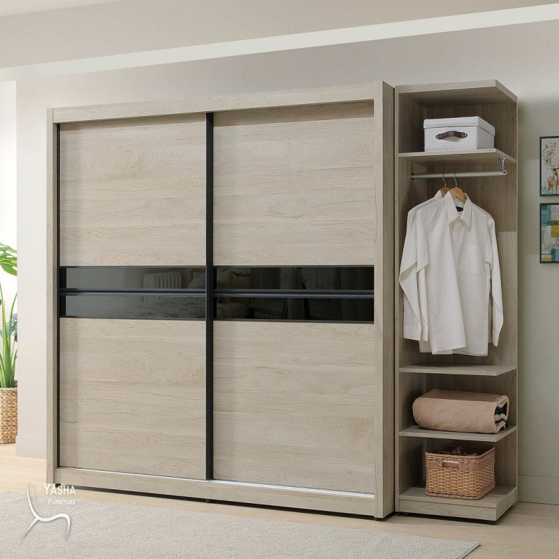 寬228×深61×高197cm 1.採用系統式1.0mm厚ABS材質封邊處理,質感細緻 2.採用台灣製造A級環保木心板,鍍黑鋁飾條,5mm強化烤漆黑玻 3.專利木紋鋼刷壓紋技術,猶如實木質感 4.背板採用內崁式美背處理,檯面與側板無背板接縫,美觀又細緻 5.台灣製造、可訂做