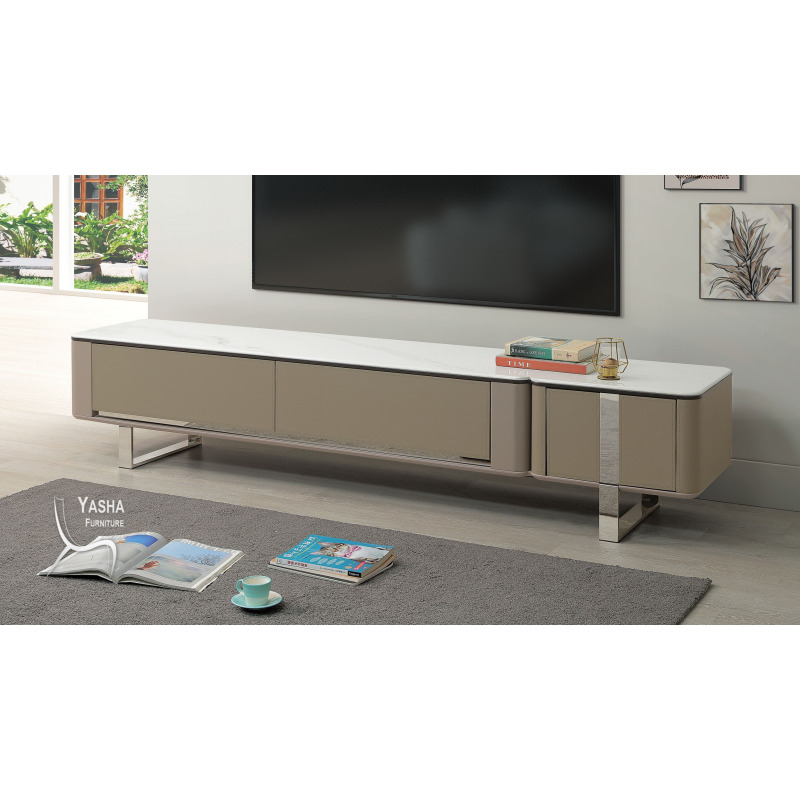 寬200×深40×高40cm 1. 環保MDF全包覆材質 2. 優耐坦耐磨烤漆塗裝 3. 馬鞍皮革精製車縫包覆 4. 採天然石基材經人工美化波麗漆處理 5. 不鏽鋼腳座亮面電鍍處理 6. 不可訂製