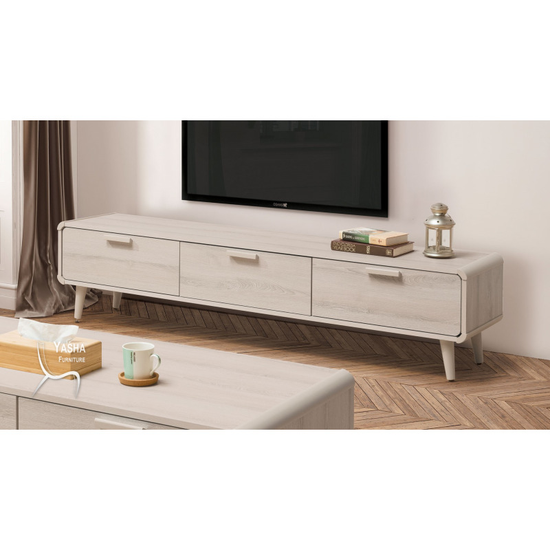 寬151.5×深40×高43.5cm 1. 正面、檯面、側板為環保木心板經立體木紋耐磨處理 2. 高18cm實木噴漆腳座 3. 台灣製造 4. 不可訂製