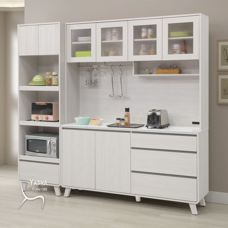 寬160×深40×高202cm 1. 環保木心板包含抽牆,經立體木紋耐磨塗裝 2. 桌面採12mm亮面雪山石岩板面,具耐磨、耐熱特性 3. 採1.0mm系統式ABS封邊,櫃體底座採實木圓弧設計 4. 木心板腳座採同色木紋處理 5. 台灣製造 6. 不可訂製