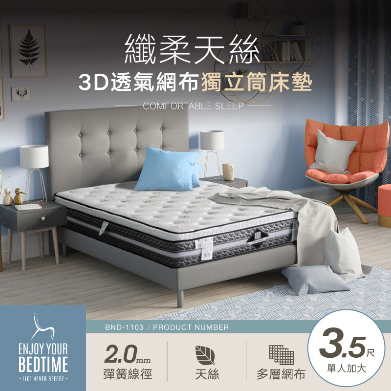 纖柔天絲超強護邊天然乳膠三線獨立筒床墊-3.5尺單人加大 (BND-11033)