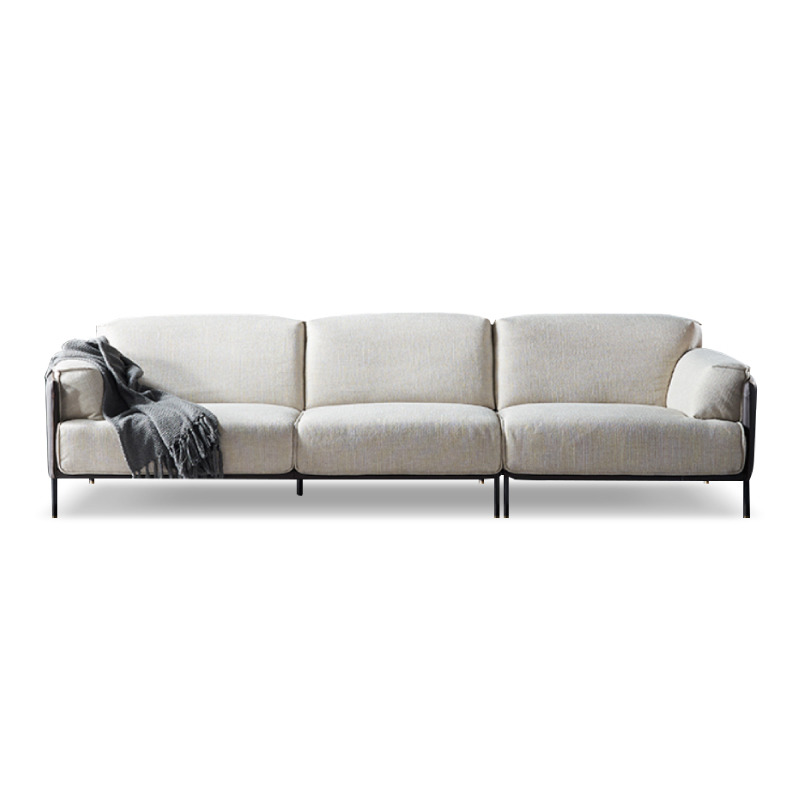 材質 : 高級棉麻、科技粒面皮、天然羽絨、高密度泡棉、透氣絲棉、五金框架、實木骨架、鐵藝金屬腳、防潮底布