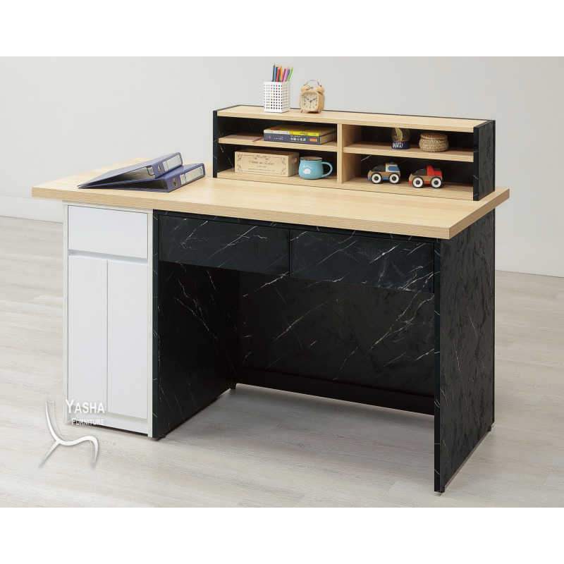 寬147×深68×高104.5cm 1. 採全環保木心板包含抽牆,經立體木紋耐磨塗裝 2. 黑色石紋為美耐皿木心板材質 3. 採系統式1.0mm ABS厚封邊處理 4. 符合文工尺紅字尺寸 5. 台灣製造 6. 不可訂製