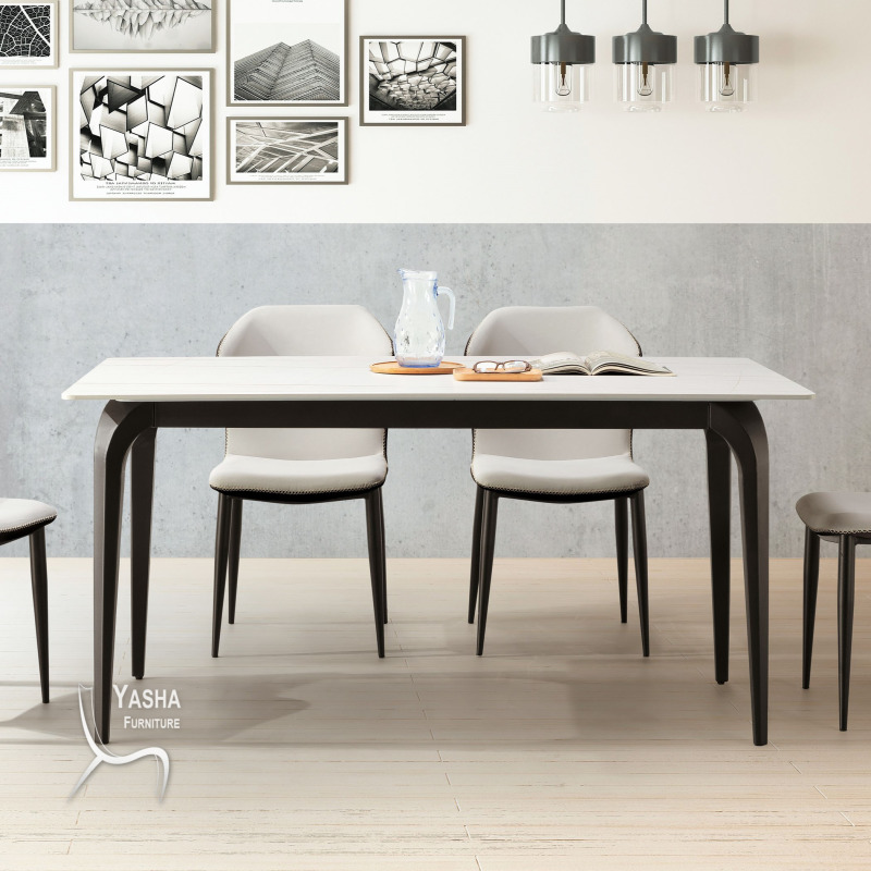 寬160×深90×高73cm 1. 桌採厚12mm人工強化岩板桌面 2. 金屬鐵管加工腳架 3. 黑鐵砂防鏽漆處理 4. 不可訂製